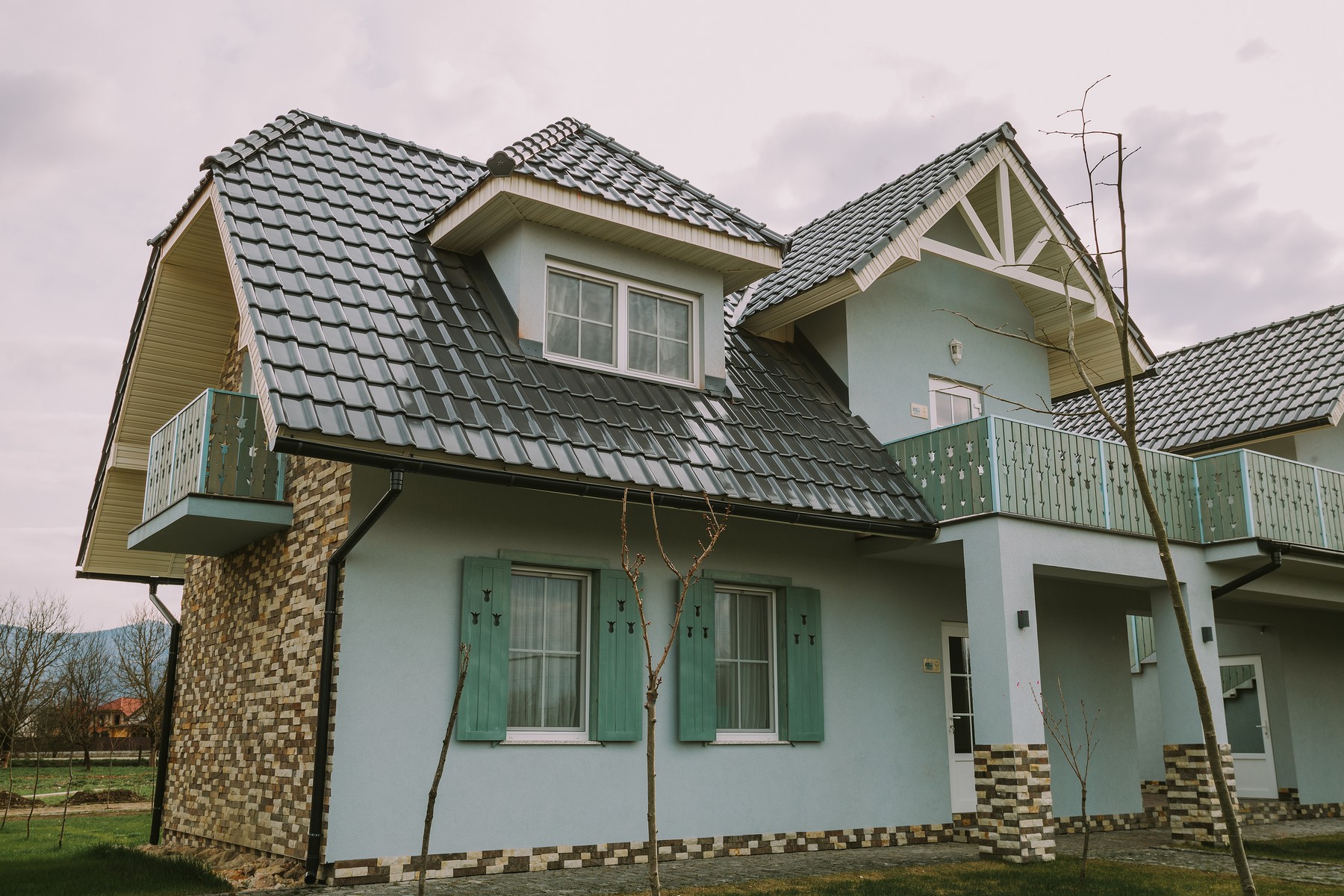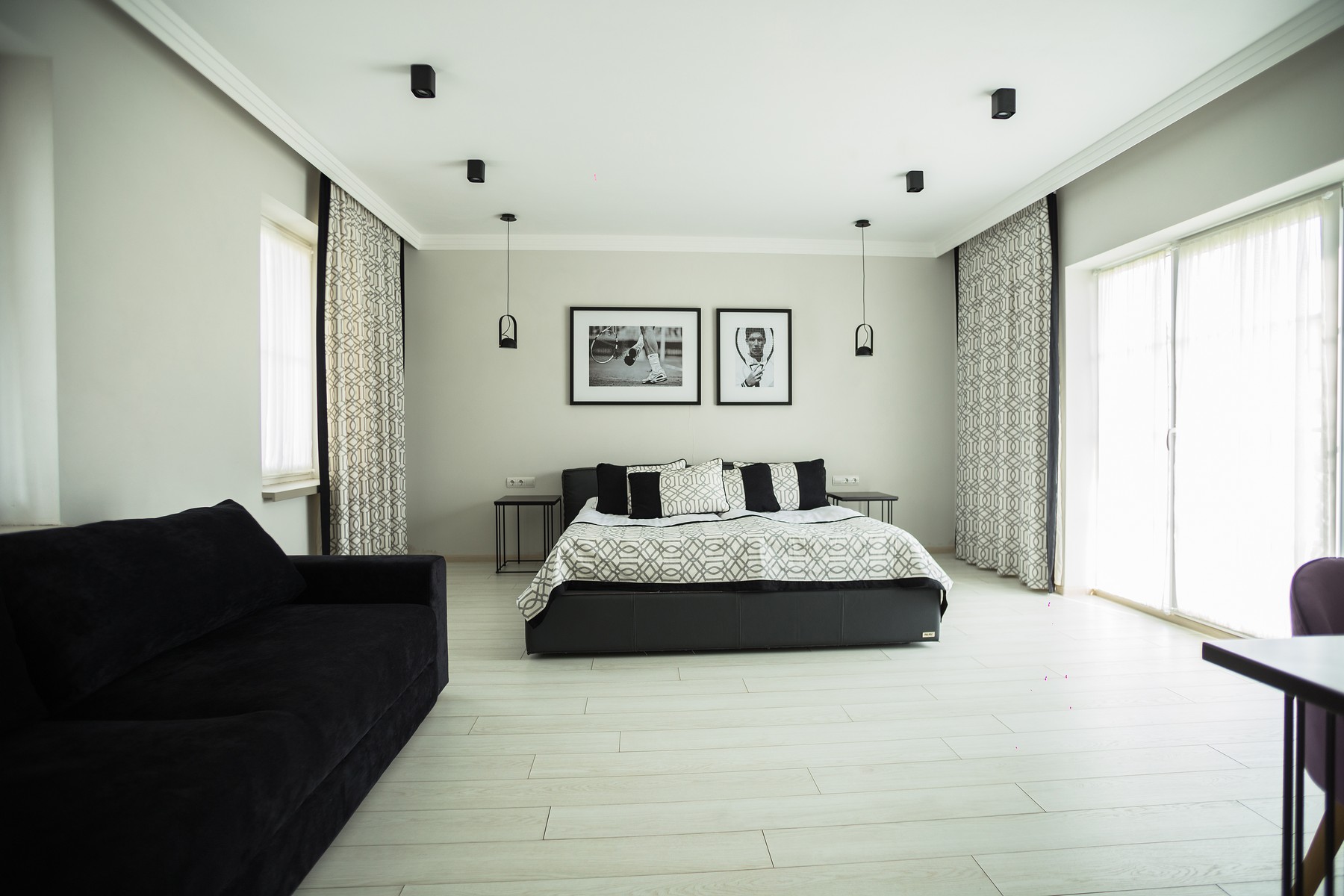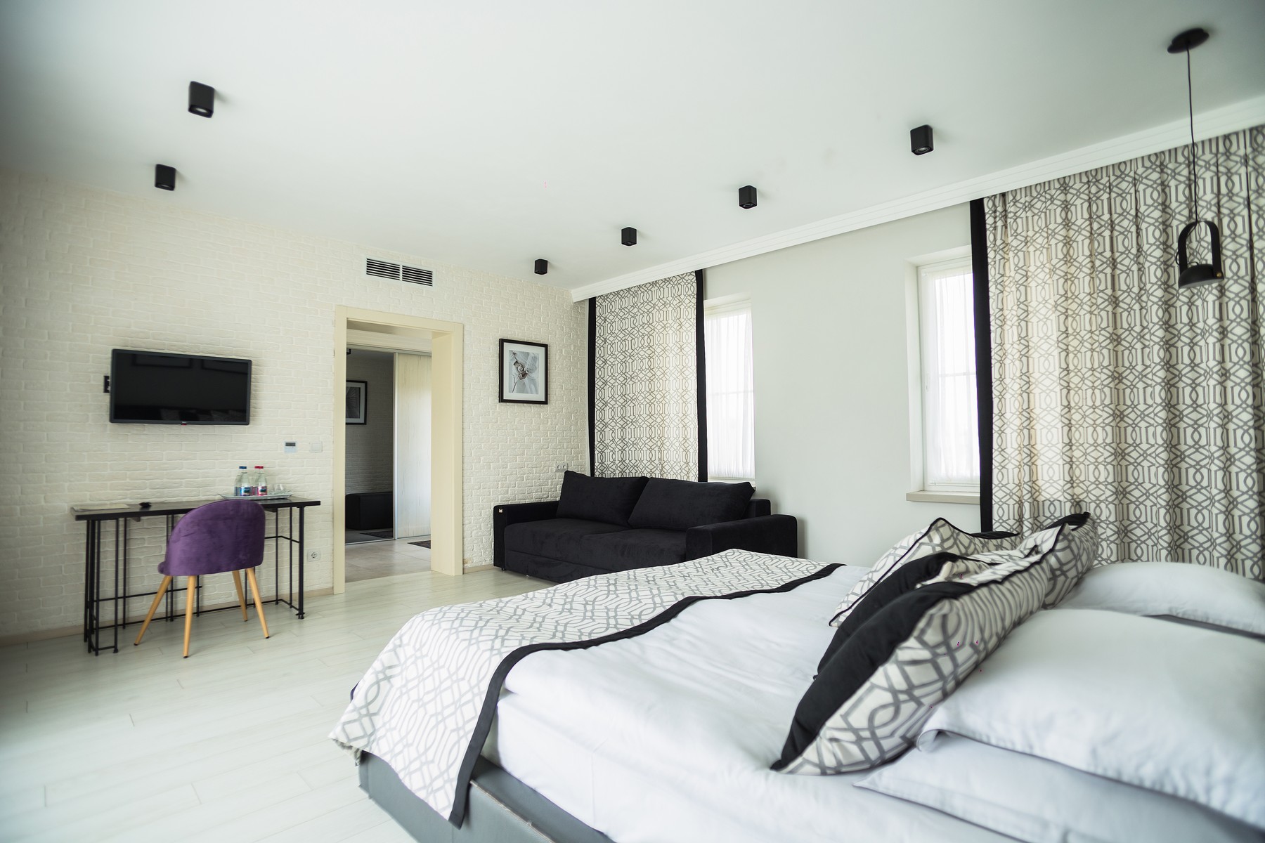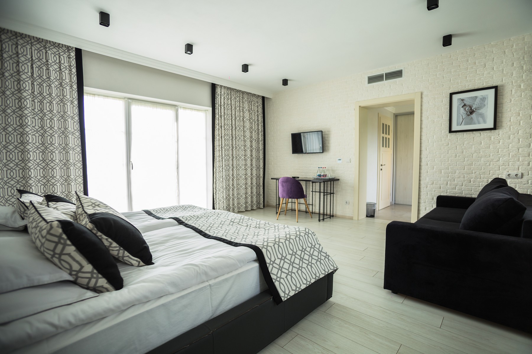 Номер в двоповерховому будинку, виконаний в сучасному стилі з дизайнерським інер’єром, зручними меблями і видом на тенісні корти. Номер обладнаний системою кондиціонування, супутниковим телебаченням та Wi-Fi.